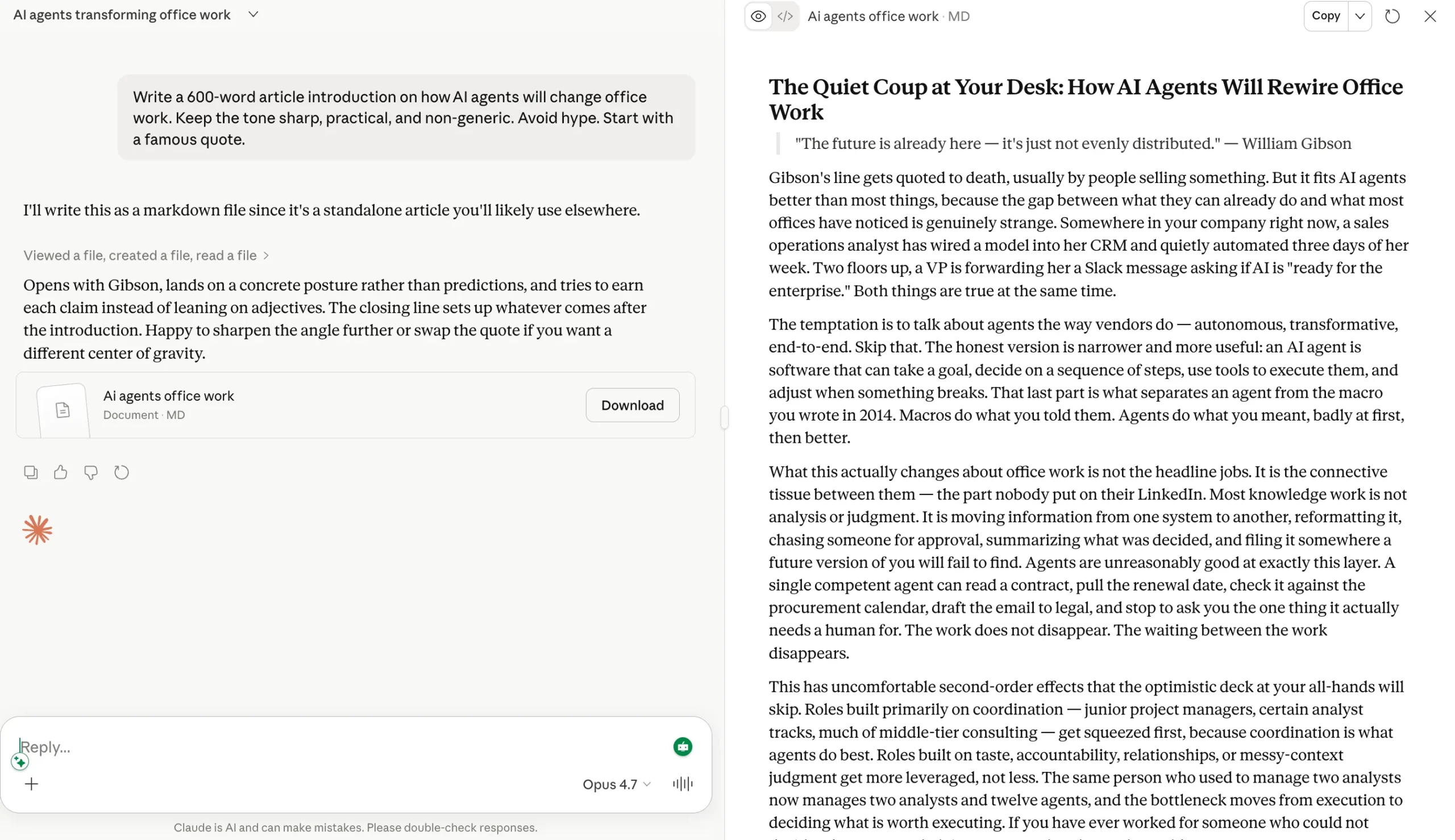 Write a 600-word article introduction on how AI brokers will change workplace work. Maintain the tone sharp, sensible, and non-generic. Keep away from hype. Begin with a well-known quote.