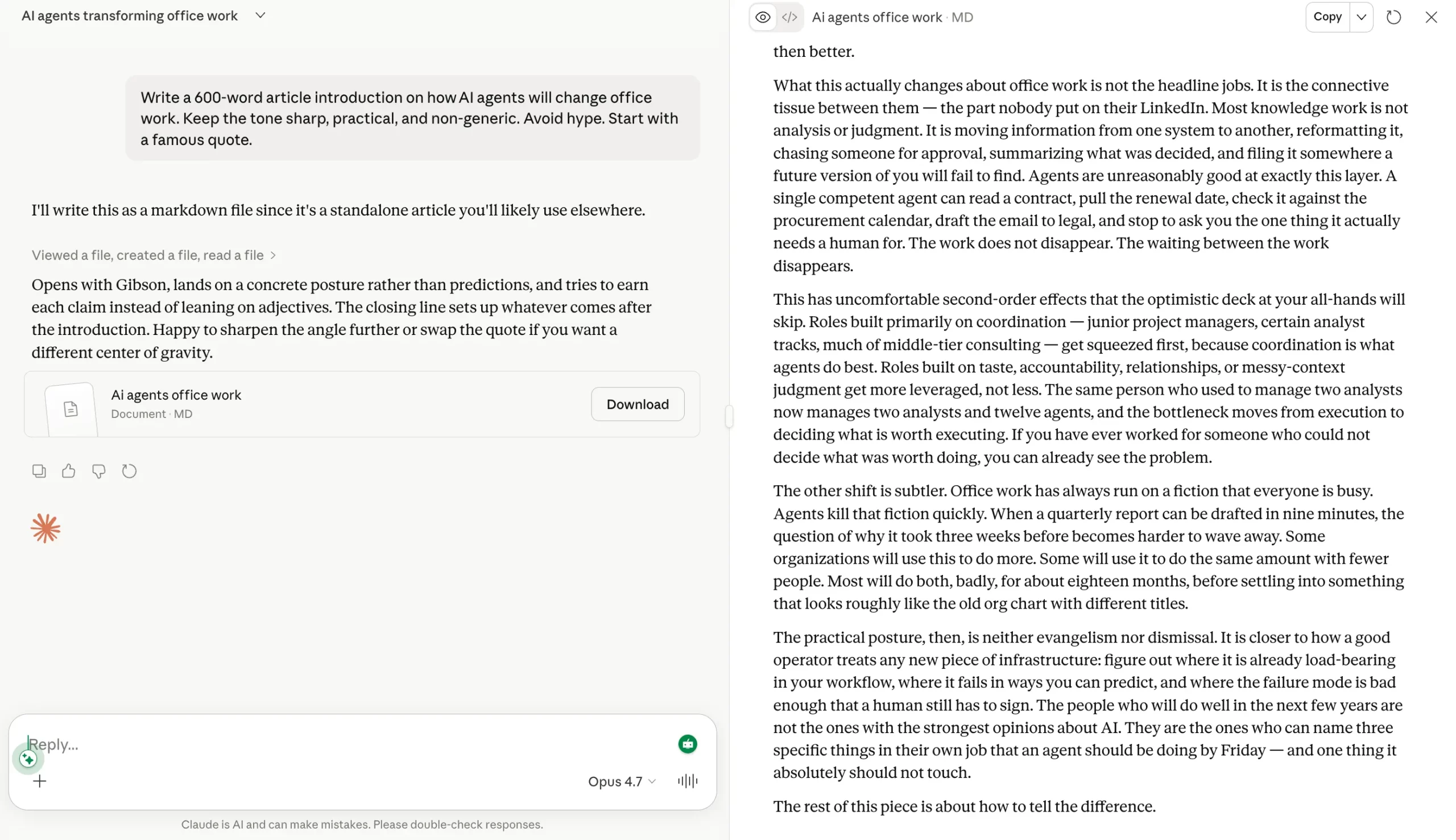Opus 4.7 Output: